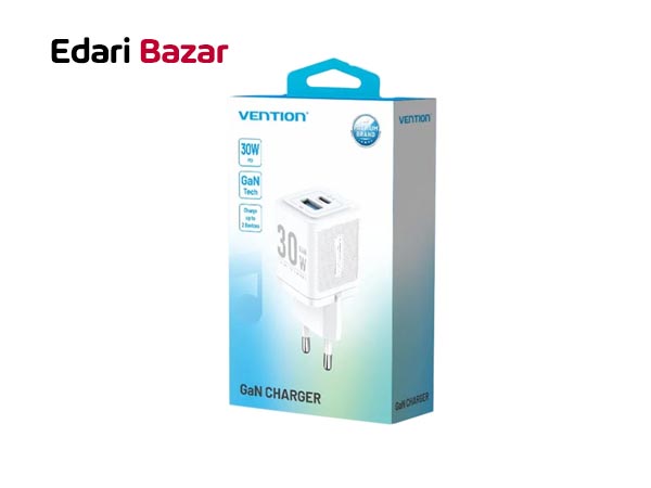 ایمنی و محافظت پیشرفته با شارژر سریع گالیوم نیترید (GaN) ونشن 30 وات دو پورت USB-C و USB-A