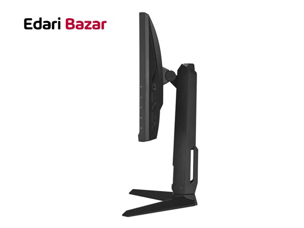 ایسوس در طراحی این مانیتور، همان سبک مستحکم و جذاب سری TUF را حفظ کرده است. صفحهنمایش تخت (Flat) با حاشیههای باریک، جلوهای مدرن به میز کار یا اتاق گیمینگ شما میدهد. پایه قابل تنظیم آن به شما اجازه میدهد زاویه و ارتفاع را مطابق با نیاز خود تغییر دهید تا در جلسات طولانی بازی، احساس خستگی نکنید.