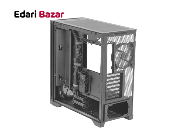 نورپردازی ARGB فن‌های پیش‌نصب‌شده جلوه‌ای پویا و قابل شخصی‌سازی ارائه می‌دهد که هم به زیبایی سیستم اضافه می‌کند و هم حس مدرن بودن تجهیزات را تقویت می‌کند. برای کسانی که به هماهنگی نور قطعات اهمیت می‌دهند، این قابلیت بسیار جذاب است. بخش اتصال در پنل جلویی از نظر کارایی کامل است: یک پورت USB 3.2 Type-C برای انتقال سریع داده، دو پورت USB 3.2 برای اتصال تجهیزات جانبی و دو جک صوتی 3.5 میلی‌متری برای هدفون و میکروفون. این مجموعه در استفاده روزمره و هنگام بازی کاملاً کافی و سریع عمل می‌کند. سیستم مدیریت کابل در داخل کیس باعث می‌شود کابل‌ها به‌طور مرتب هدایت و مخفی‌شوند. این ویژگی علاوه بر بهبود جریان هوا، چهره‌ای تمیز و حرفه‌ای به داخل کیس می‌دهد. فیلترهای گرد و غبار در بخش‌های ورودی باعث کاهش ورود گرد و خاک به قطعات می گردد. لذا نیاز به تمیزکاری مکرر را کم می‌کند. از این رو در بلندمدت عمر قطعات را افزایش می‌دهد.