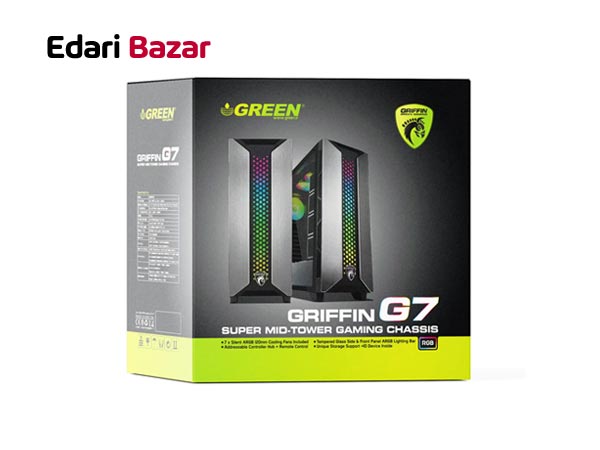 کیس کامپیوتر گمینیگ گرین GRIFFIN G7 یک شاسی Mid Tower استثنایی است. زیرا با هدف ارائه بالاترین سطح عملکرد در قالبی مدرن طراحیشده است. تمرکز بر تهویه قدرتمند هفتفنه و پشتیبانی از رادیاتور ۳۶۰ میلیمتری، اطمینان میدهد که حتی داغترین سختافزارها نیز خنک باقی خواهند ماند. قابلیتهای توسعه فوقالعاده شامل پشتیبانی از مادربردهای E-ATX، کارتهای گرافیک تا ۳۹۰ میلیمتر و ظرفیت ذخیرهسازی بیسابقه (۱۱ درایو) این کیس را از رقبا متمایز میسازد. GRIFFIN G7 با طراحی ویترینی شیشهای، مدیریت کابل سادهشده به واسطه پوشش پاور و هاب ۹ کاناله ARGB، مجموعهای کامل و جذاب را ارائه میدهد.